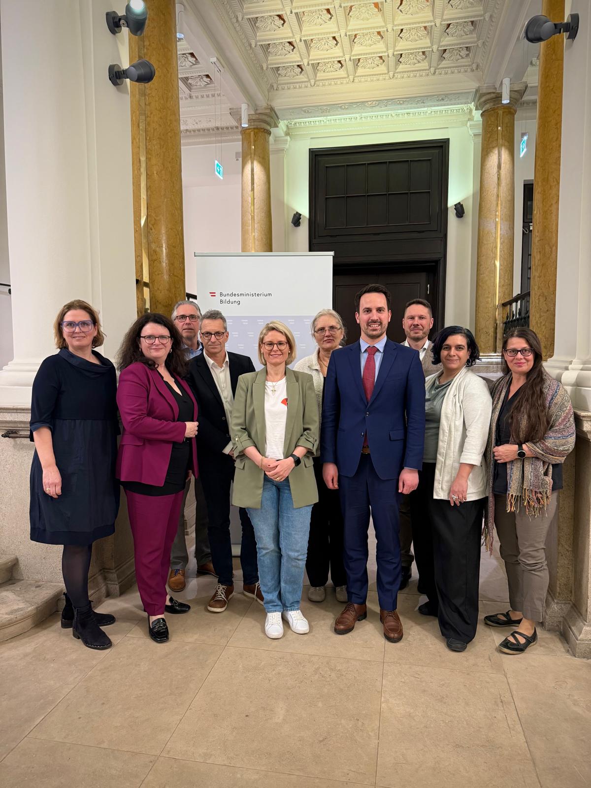 Präsident Thomas Maximiuk(4. von links) stattete dem Bildungsminister Christoph Wiederkehr gemeinsam mit den Mitgliedern des Elternbeirates einen Besuch ab.